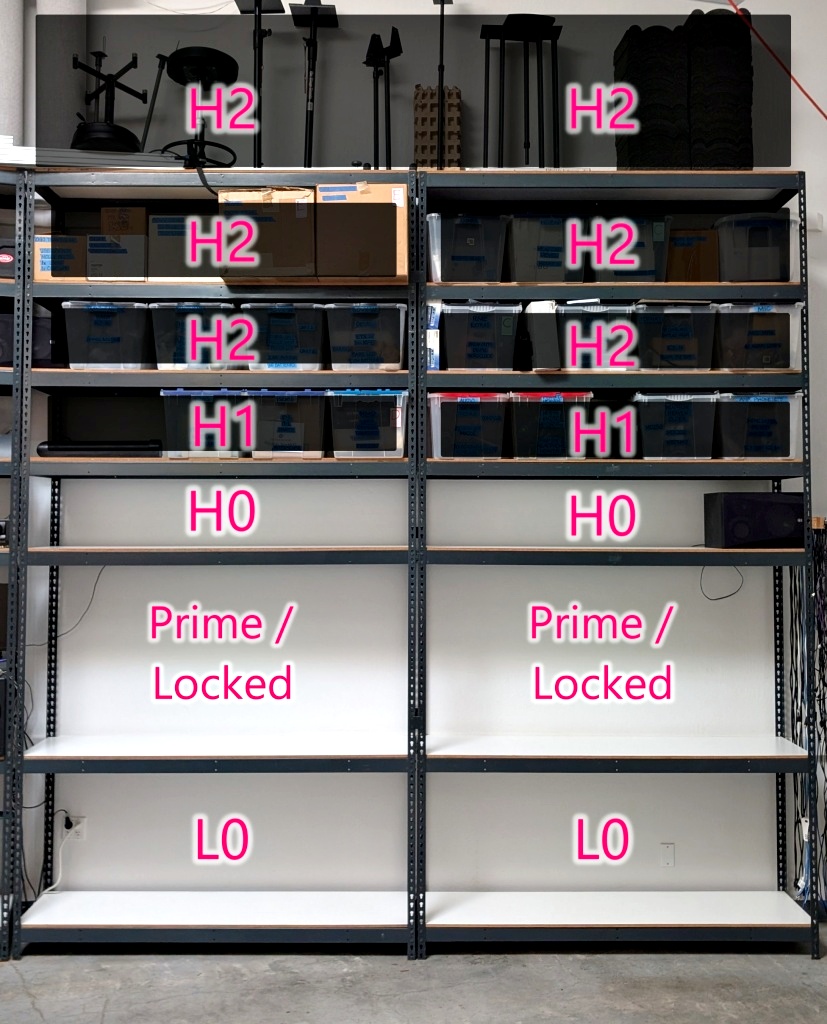 The highest shelf is 12' off the floor.